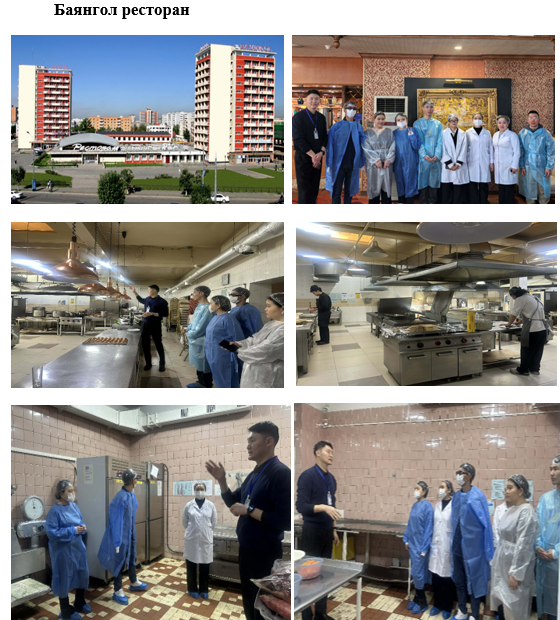 Манай анги (огноо)-ны өдөр (үйлдвэрийн нэр)-д танилцах дадлага хийсэн. Хүнсний Үйлдвэрлэл, Технологийн Их Сургуулийн ХҮҮТ-3б, ХҮҮТ, ХҮТ, ХЗШС, ХЧАБ, ХТКС-1а ангийн оюутнууд, ХҮТ тэнхимийн багш Э.Батчимэг нартай БАЯНГОЛ ресторан, NOMADS hospitality -ийн ‘’Хүнсний хагас боловсруулсан бүтээгдэхүүний үйлдвэтэй’’ танилцах дадлага хийсэн. Дадлагын үеэр бид тухайн үйлдвэрийн түүх, үйлдвэрлэлийн үйл явц, түүхий эдийн хэрэглээ, бүтээгдэхүүн үйлдвэрлэх шат дамжлага, чанарын хяналтын систем болон ажилчдын хөдөлмөрийн нөхцөлтэй танилцсан. Мөн үйлдвэрийн тоног төхөөрөмжийн ажиллагаа, үйлдвэрлэлийн зохион байгуулалт, аюулгүй ажиллагааны дүрмийн талаар мэдээлэл авсан. Оюутнуудад Аж ахуй нэгж байгууллагын танилцууллагыг БАЯНГОЛ рестораны еранхий менежер н.Уламбаяр, NOMADS группын сургалтын менежер Г.Янжмаа нар танилцуулаг тайлбар хийж хамтран ажилласан.
