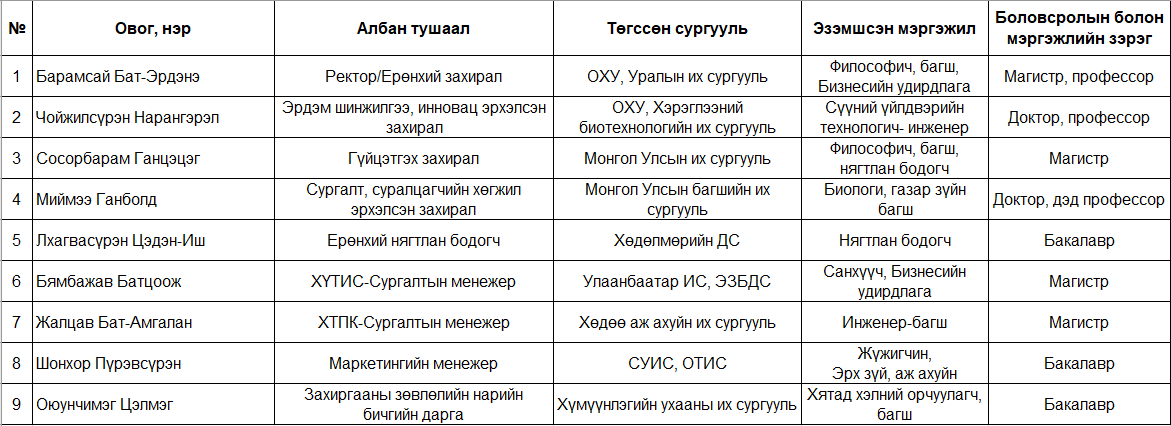 Технологийн дээд сургуулийн Удирдах зөвлөл