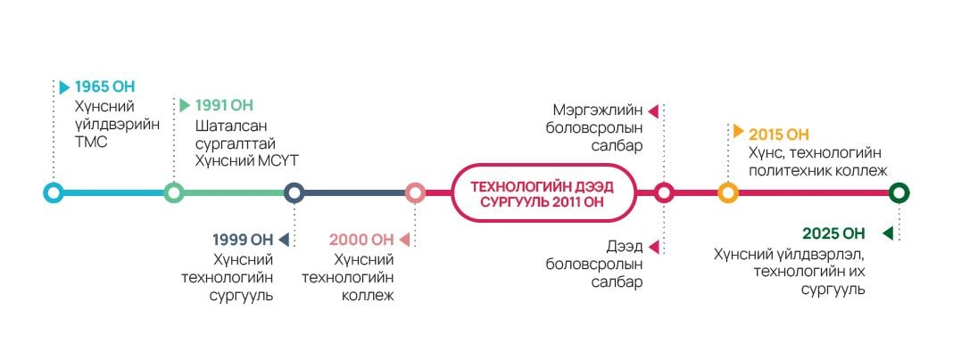 Хүнсний үйлдвэрийн яамны сайдын 1965 оны 06 сарын 28-ны өдрийн 89-р тушаалаар тус сургуулийн анхны захирлаар Цэрэндорж овогтой Пүрэвжав 1965 оны 07 дугаар сарын 01-нээс эхлэн томилогдож, захиргааны 24 орон тоотой ажиллаж мах, сүү, талх чихэр, гурил, засварчны мэргэжлээр 5 ангид 250 сурагч элсүүлж, 1965 оны 10 дугаар сарын 01-нд (хуучнаар санхүүгийн техникумын хичээлийн байрны баруун хойд жигүүрт) хичээлээ эхэлснээр сургууль анх гал голомтоо асаасан.